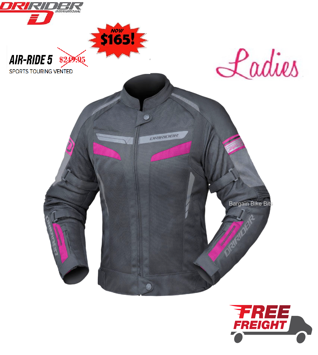 September 30, 2025Dririder AIR RIDE 5 Ladies Female Womens Motorcycle Vented Summer Jacket Black/Pink Touring