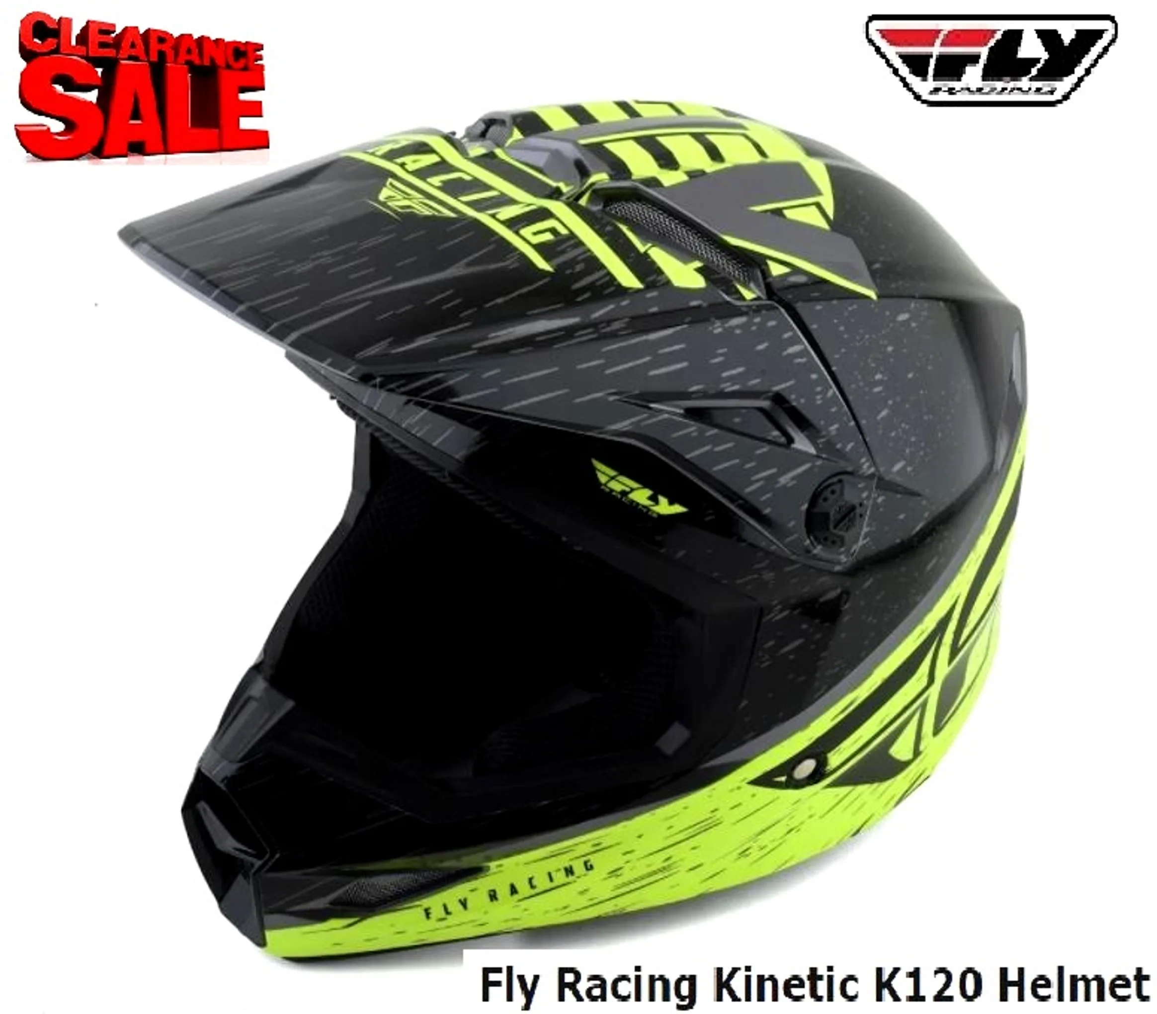 CLEARANCE! Fly Racing Kinetic Dirt Bike Helmet K120 Motocross MX Off Road(HI-VIZ/Black)