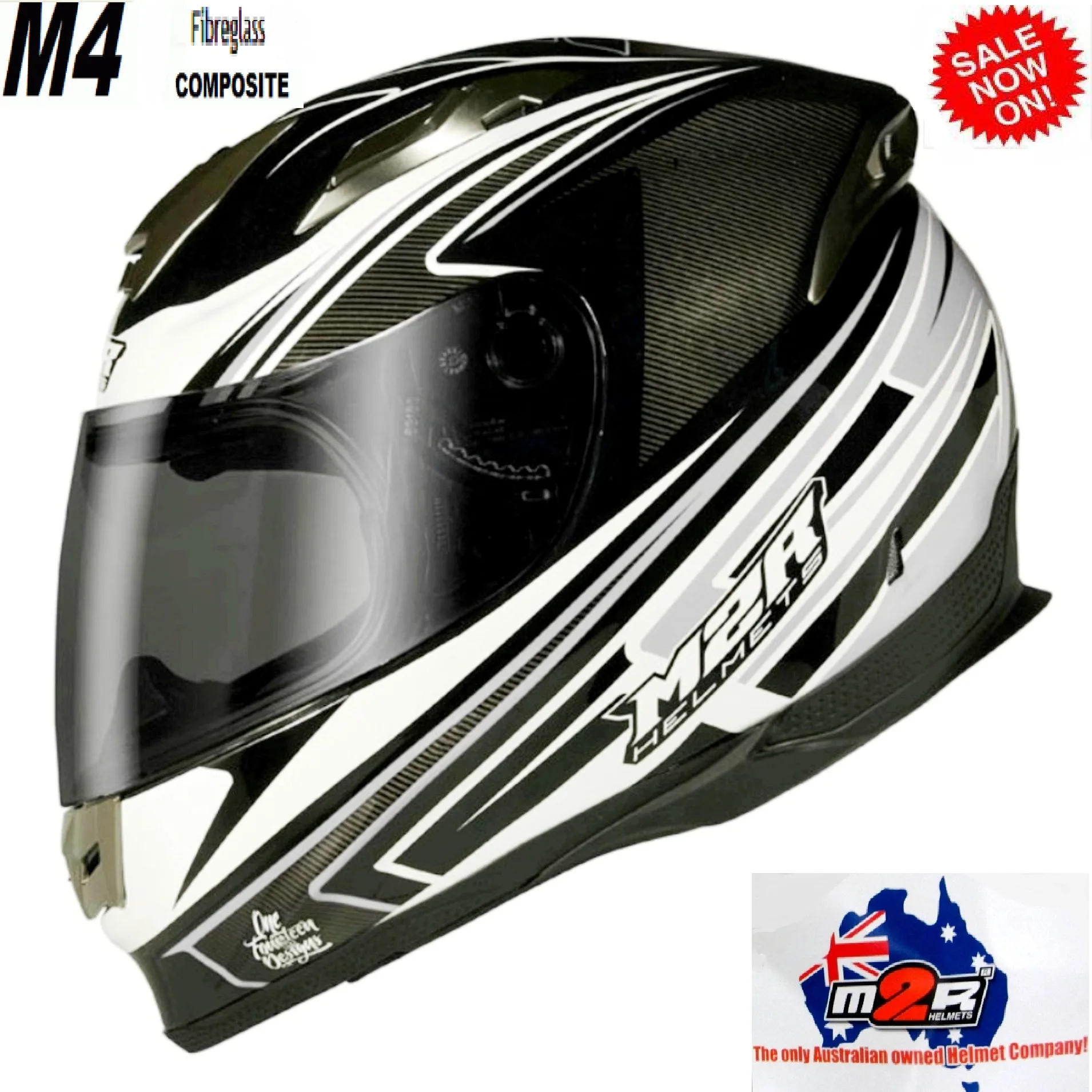 M2R M4 Octane Motorcycle Helmet NEW Matt Silver/ Black FIBREGLASS COMPOSITE Small